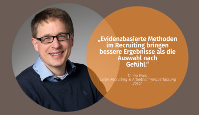 Thimo Fries, Recruitingprofi im HR-Service für Bosch, setzt bei Einstellungen auf evidenzbasierte Eignungsdiagnostik. Welche Vorteile ein solches Vorgehen für Unternehmen und Kandidaten bringt, erklärt er im Interview.